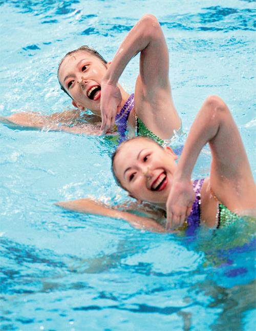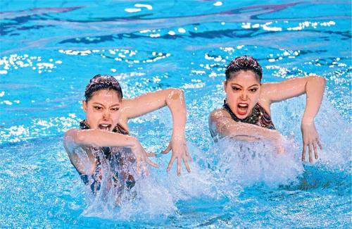 北京队组合林彦含/林彦君在双人自由自选比赛中。 参加本次全运会花样游泳比赛的10支队伍中,双胞胎竟多达7对。王柳懿/王芊懿、林彦含/林彦君外,刘津含/刘津彤参加了女子双人项目金牌的争夺。另有4对双胞胎在集体项目中打配合,包括广东队的何宇璐、何宇瑶,四川“姐妹花”徐可心、徐可意及“兄弟连”陈修安、陈修平,还有北京队的兄弟组合郭牧兮、郭牧也。 王者归来 11月15日,“中国舞蹈之城”广东省江门市
