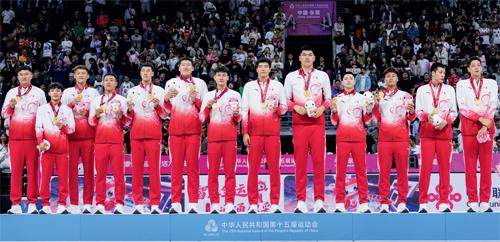 广东队在颁奖仪式上。 全运会男篮决赛的终场哨声响起,看台上爆发的欢呼声如潮水般漫过整座体育馆。赵睿眼含热泪,周鹏与队友相拥庆祝,主教练杜锋鞠躬答谢球员。这一刻,不仅是胜利的狂欢,更是一场跨越时空的青春重逢。那些曾经在球场上挥洒汗水的“老男孩”,以不同的方式回到这片熟悉的场地,勾起了无数球迷尘封已久的记忆。 为参加本届全运会男篮比赛,广东队做足了准备,阵容构成除了宏远队的班底,还召回了已转会至北
