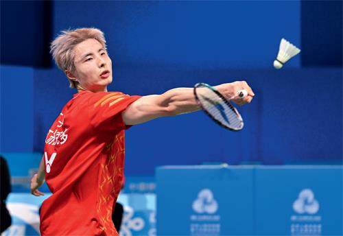 陈雨菲在比赛中回球。 14天,一次次奋力挥拍过后,全运会羽毛球决赛11月20日落幕,盛会的羽毛球赛场,不同旋律的音符交相辉映,有年轻人的奋勇争先,也有荣誉满身的功勋者奋力一搏,更有正值壮年的勇敢者突破自己。 青年赛新锐争先 本届全运会羽毛球项目首次增加青年赛事,要求参赛队员为2007年1月1日以后出生,每队可以有两名2005年1月1日后出生的运动员。刚刚在10月初世青赛崭露头角的年轻人迎来了
