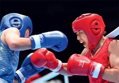 吴愉(右)和齐昕宇在比赛中。 摘下头套,甩甩被汗水浸湿的短发,吴愉露出笑容:“完成任务了。”11月13日,在第十五届全国运动会拳击比赛女子50公斤级决赛后,获胜的吴愉走下拳台,寥寥数语,铿锵有力。 4场比赛,4个5比0。本届全运会上,她代表北京体育大学队出战,赢得利落。决赛的三个回合,吴愉展现了截然不同的战术风格:首回合游走控制,次回合伺机反击,第三回合主动拼打。能明显感受到,她在享受比赛。