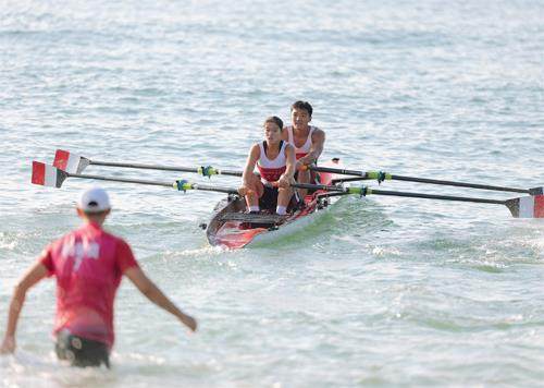 1 征服大海是人类长久以来的愿望,因此产生了帆船这项古老的运动。其行进主要依赖自然力量与驾驶者的技术,风力大小、水流变化、破浪技巧以及心理素质,都会影响运动员的状态和表现。对此,26岁的贝俊龙有清醒的认识。他说:“随着经验累积,我明白帆船是相当不可预测的运动。天气是永远无法控制的,有时就是会遇到糟糕的一天。” 十五运会帆船赛在广东海上项目训练中心举行,男子爱尔卡7级预赛正值5级强风,比赛时