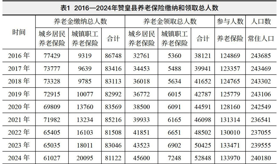 通过推进全民参保和提高养老待遇等工作,养老保险总参与人数呈现上升趋势,城镇职工和城乡居民退休金收入比呈现下降趋势。赞皇县存在城乡居民养老保险代缴人口众多及近两年缴纳人数减少、领取增加的问题,也存在与全国其他地区之间养老金差距、养老保险制度内部差距和不同制度之间的养老金差距这些全国共性问题。在养老保险工作方面,提高养老保险覆盖率和养老金领取待遇,缩小城镇职工和城乡居民之间养老金差距,是下一步各级政府